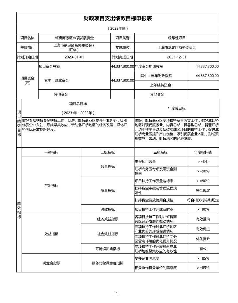 索引号: 00001434-9/2023-00000009 发布机构: 区商务委 发文日期: 2023年01月28日 主题分类: 绩效评价 关键词: 嘉定区商务委员会2023年绩效目标申报表-虹桥商务区专项发展资金 发布时间:2023-01-28 浏览次数: 次 【字体:小 大】